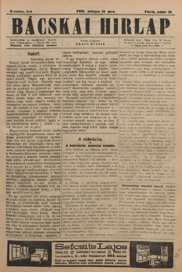 Bácskai Hirlap, 18. évf. 1914. január 30. 24. sz.