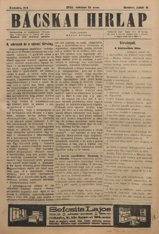Bácskai Hirlap, 18. évf. 1914. január 31. 25. sz.
