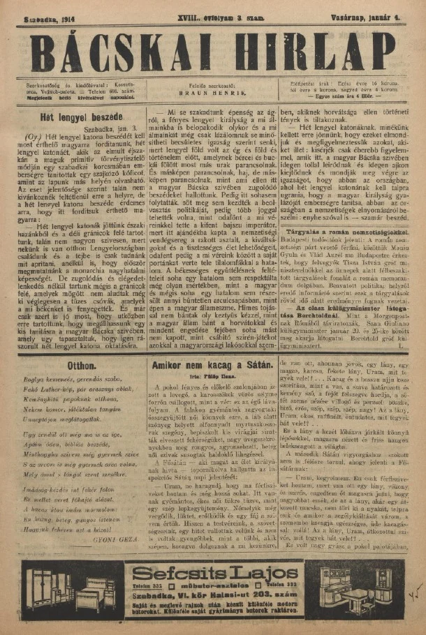 Bácskai Hirlap, 18. évf. 1914. január 4. 3. sz.