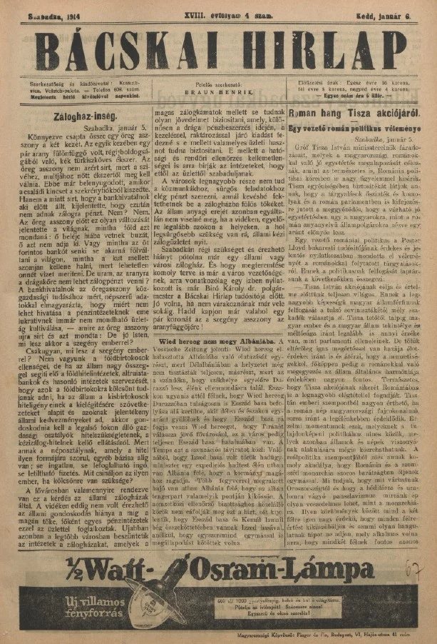 Bácskai Hirlap, 18. évf. 1914. január 6. 4. sz.