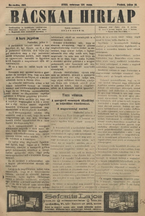 Bácskai Hirlap, 18. évf. 1914. július 10. 154. sz.