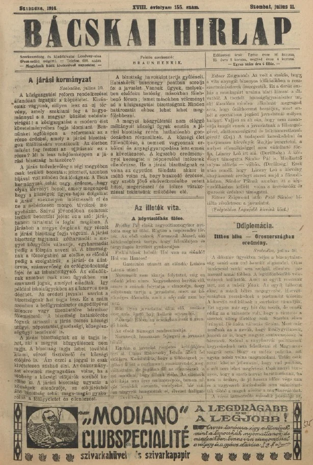 Bácskai Hirlap, 18. évf. 1914. július 11. 155. sz.