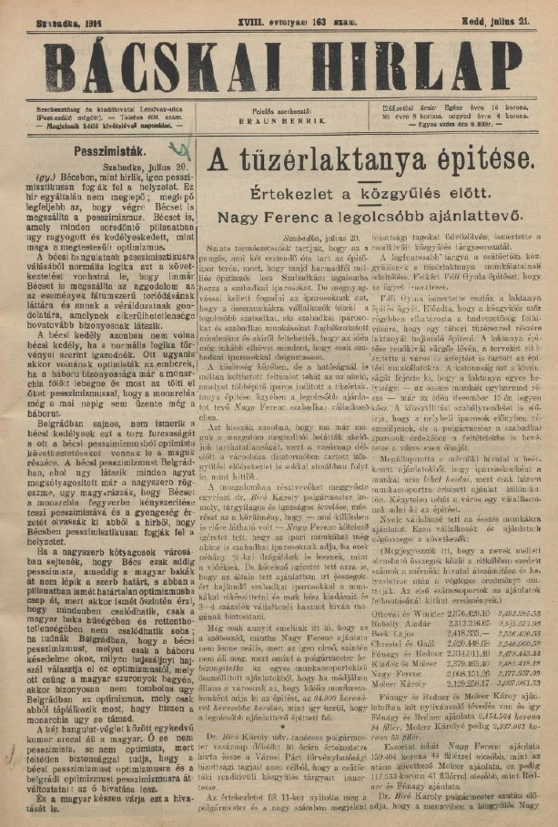 Bácskai Hirlap, 18. évf. 1914. július 21. 163. sz.