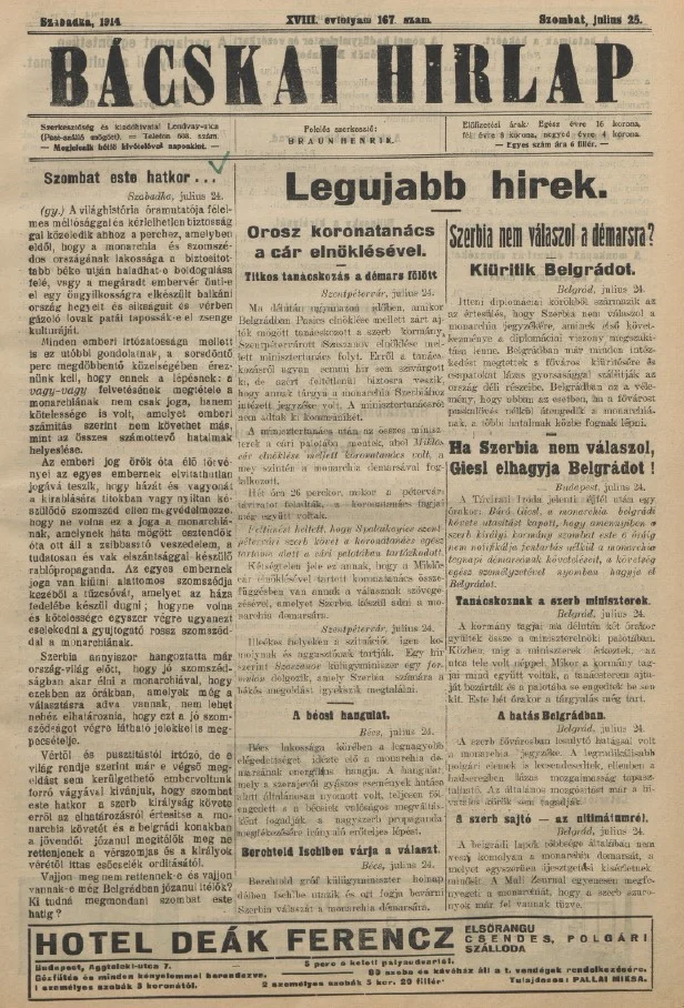 Bácskai Hirlap, 18. évf. 1914. július 25. 167. sz.