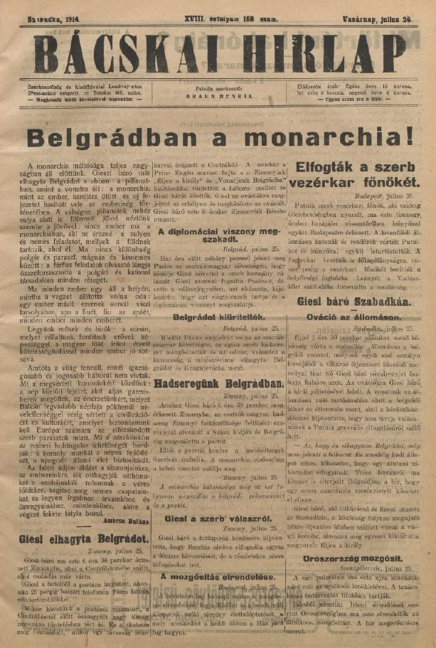 Bácskai Hirlap, 18. évf. 1914. július 26. 168. sz.