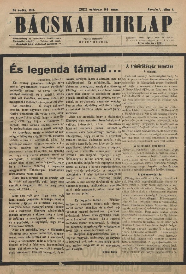 Bácskai Hirlap, 18. évf. 1914. július 4. 149. sz.