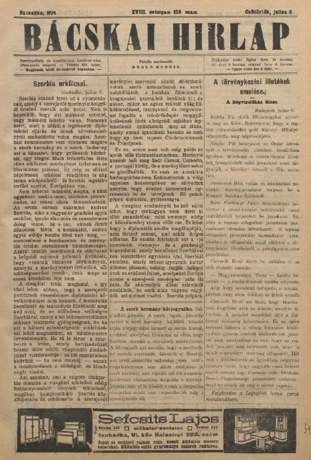 Bácskai Hirlap, 18. évf. 1914. július 9. 153. sz.
