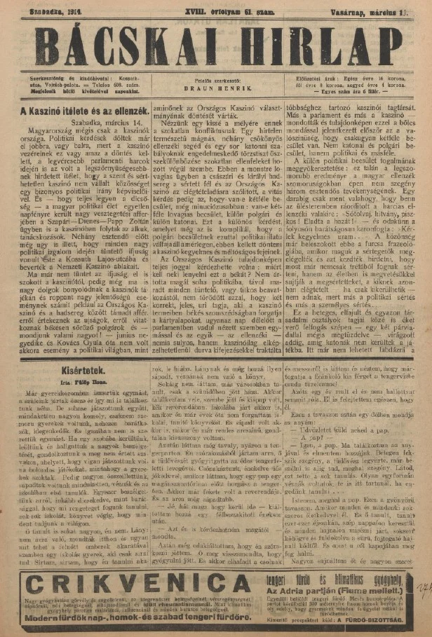 Bácskai Hirlap, 18. évf. 1914. március 15. 61. sz.