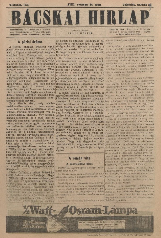 Bácskai Hirlap, 18. évf. 1914. március 19. 64. sz.