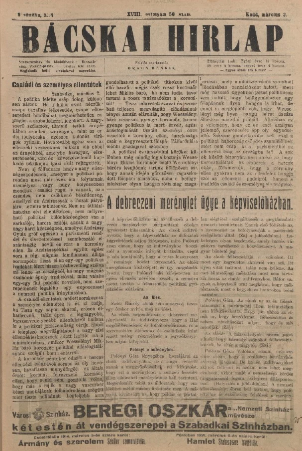 Bácskai Hirlap, 18. évf. 1914. március 3. 50. sz.