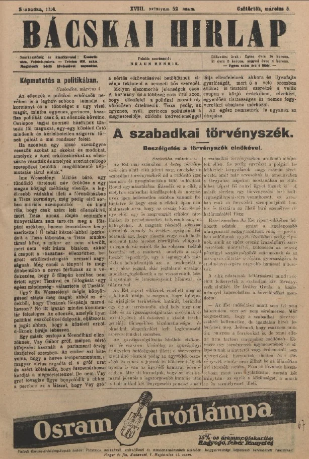 Bácskai Hirlap, 18. évf. 1914. március 5. 52. sz.