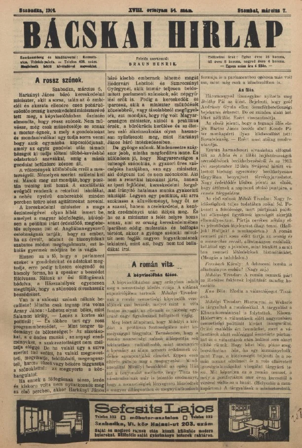 Bácskai Hirlap, 18. évf. 1914. március 7. 54. sz.
