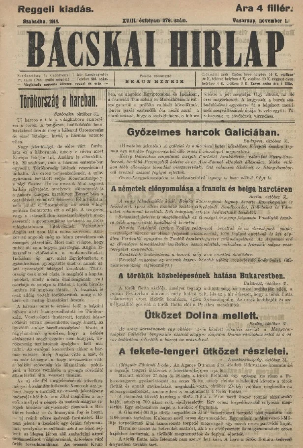 Bácskai Hirlap, 18. évf. 1914. november 1. 276. sz.