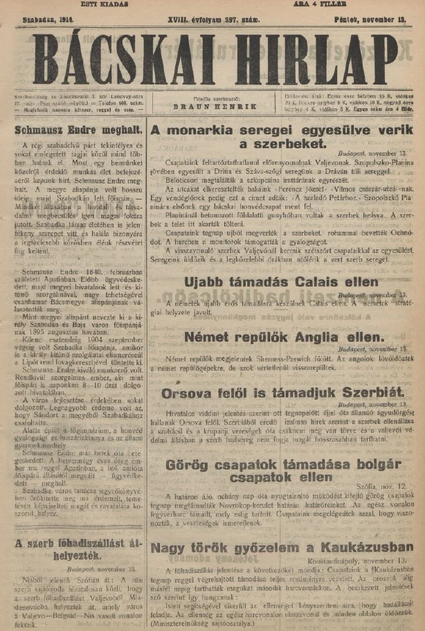 Bácskai Hirlap, 18. évf. 1914. november 13. 297. sz.