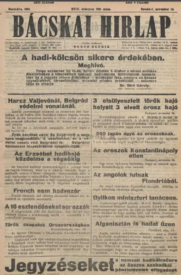 Bácskai Hirlap, 18. évf. 1914. november 14. 299. sz.