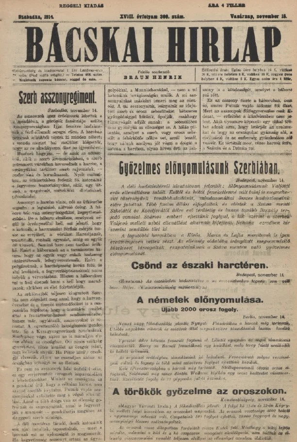 Bácskai Hirlap, 18. évf. 1914. november 15. 300. sz.