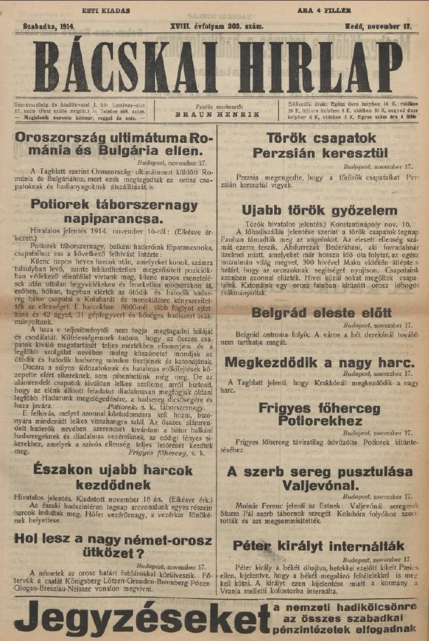 Bácskai Hirlap, 18. évf. 1914. november 17. 303. sz.