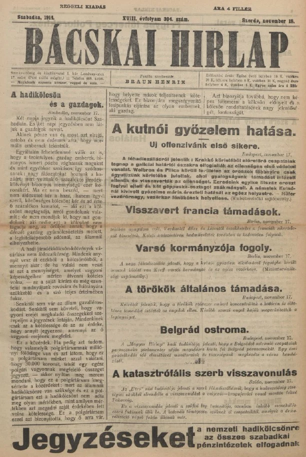 Bácskai Hirlap, 18. évf. 1914. november 18. 304. sz.