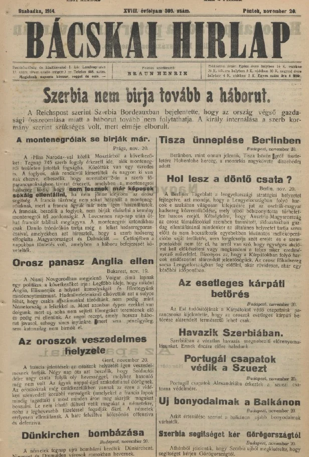 Bácskai Hirlap, 18. évf. 1914. november 20. 309. sz.