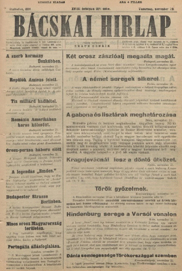 Bácskai Hirlap, 18. évf. 1914. november 22. 312. sz.