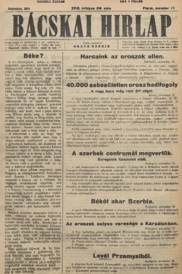 Bácskai Hirlap, 18. évf. 1914. november 27. 320. sz.