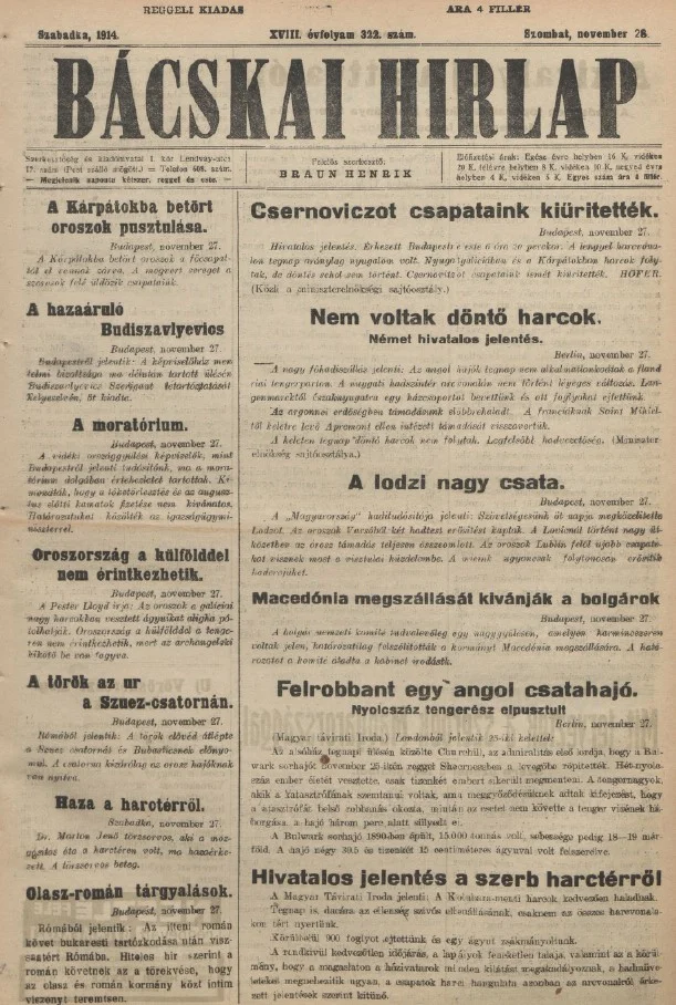 Bácskai Hirlap, 18. évf. 1914. november 28. 322. sz.