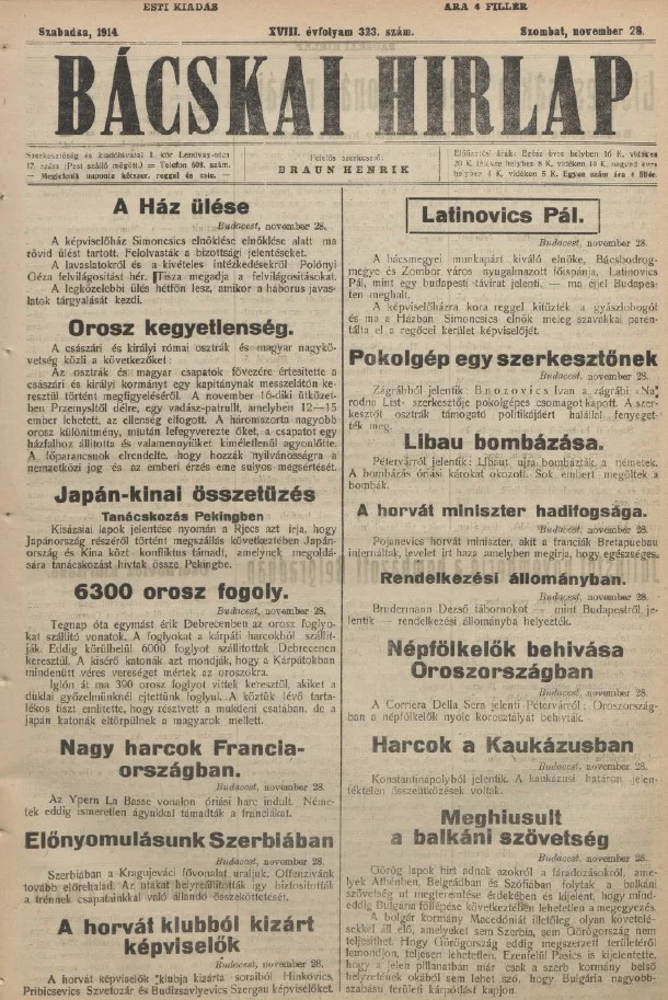 Bácskai Hirlap, 18. évf. 1914. november 28. 323. sz.