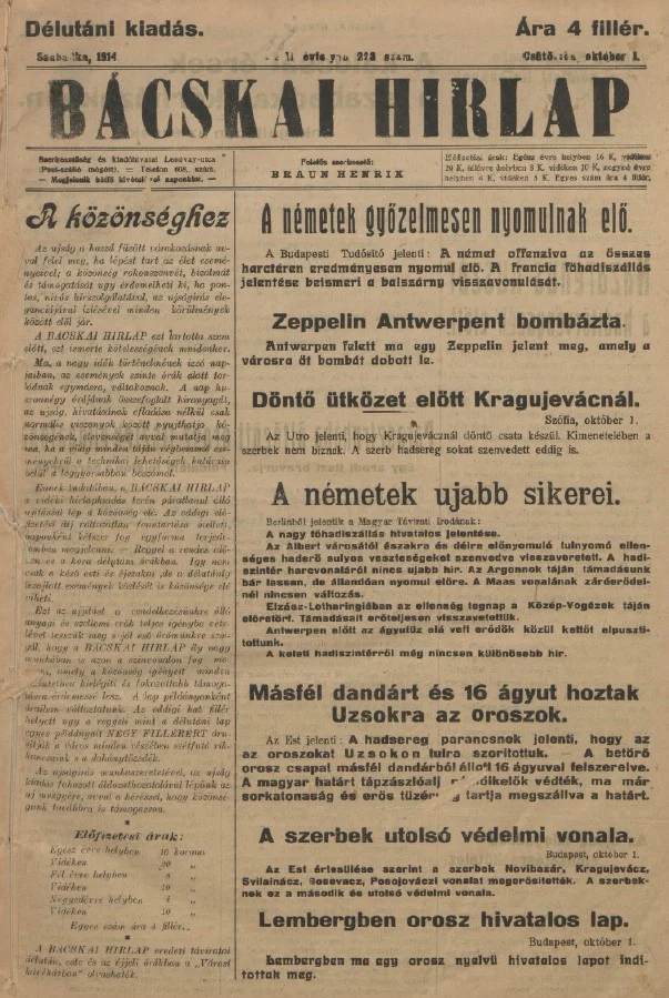 Bácskai Hirlap, 18. évf. 1914. október 1. 223. sz.