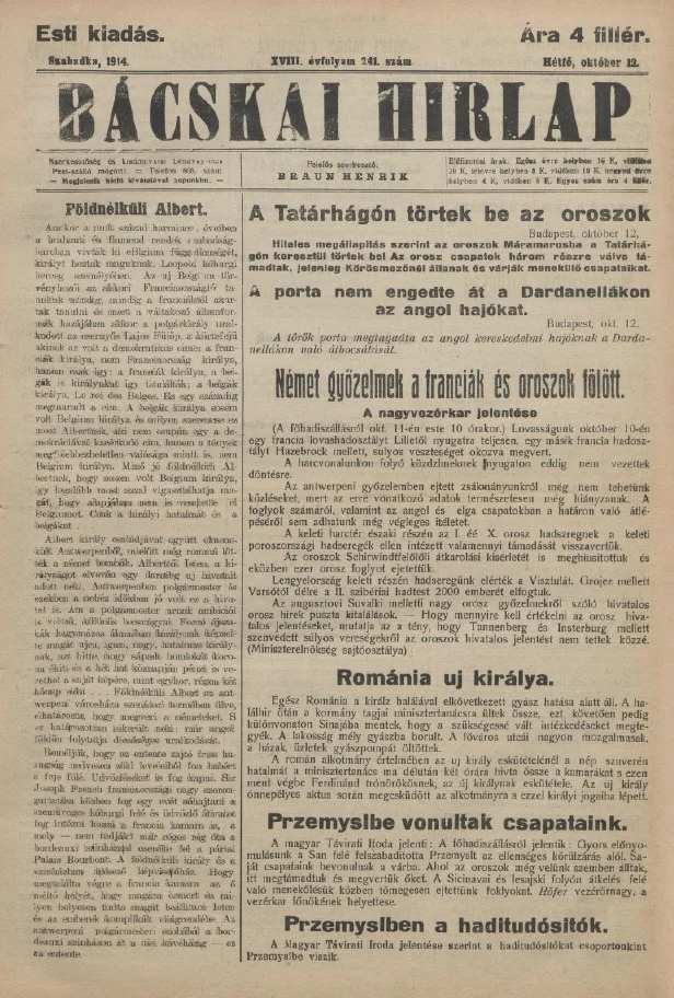 Bácskai Hirlap, 18. évf. 1914. október 12. 241. sz.