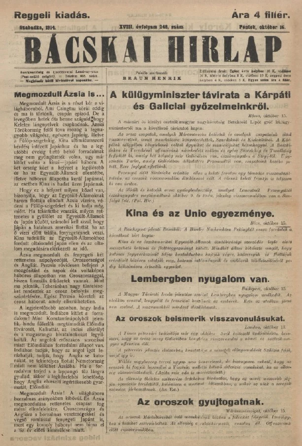 Bácskai Hirlap, 18. évf. 1914. október 16. 248. sz.