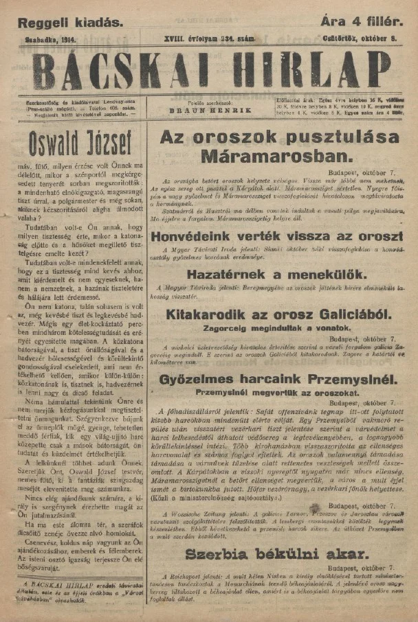 Bácskai Hirlap, 18. évf. 1914. október 8. 234. sz.