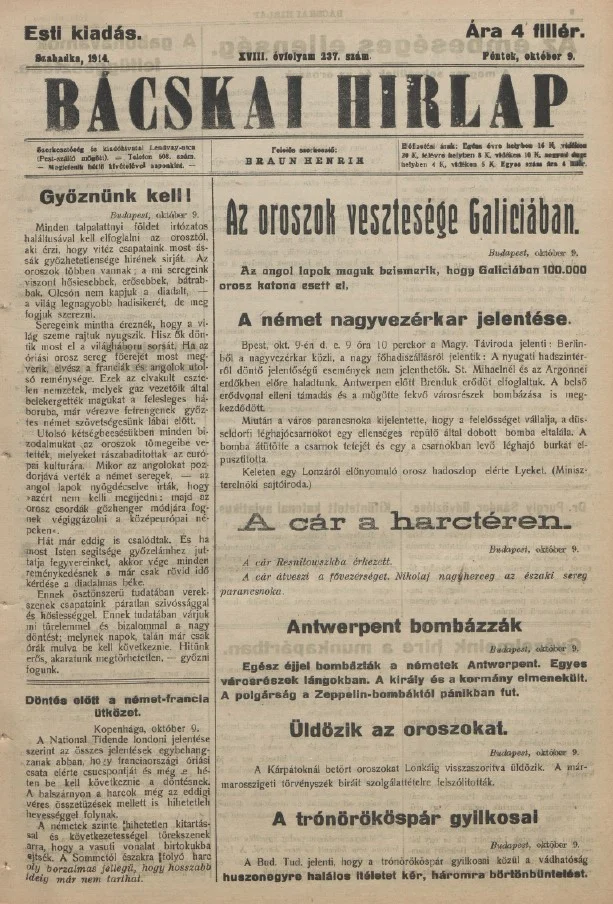 Bácskai Hirlap, 18. évf. 1914. október 9. 237. sz.