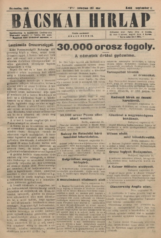 Bácskai Hirlap, 18. évf. 1914. szeptember 1. 197. sz.