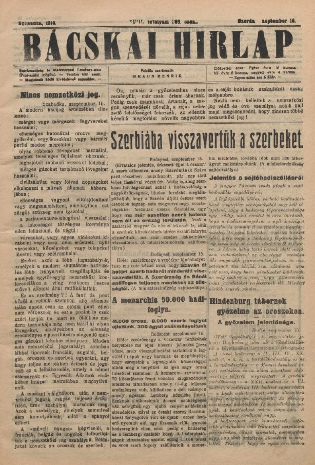 Bácskai Hirlap, 18. évf. 1914. szeptember 16. 209. sz.