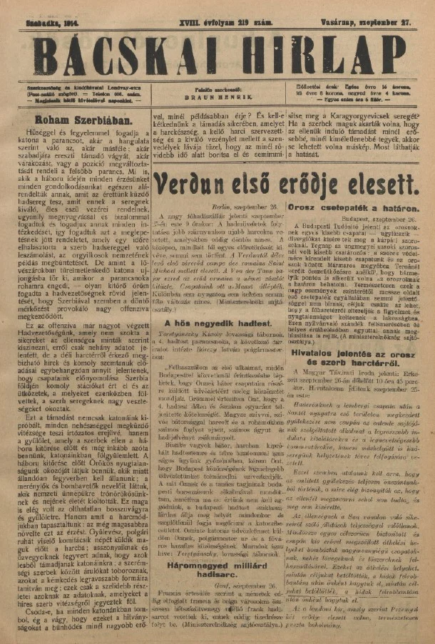 Bácskai Hirlap, 18. évf. 1914. szeptember 27. 219. sz.