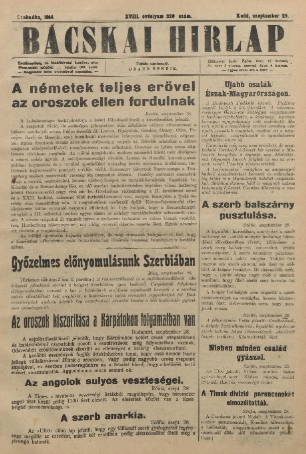 Bácskai Hirlap, 18. évf. 1914. szeptember 28. 220. sz.