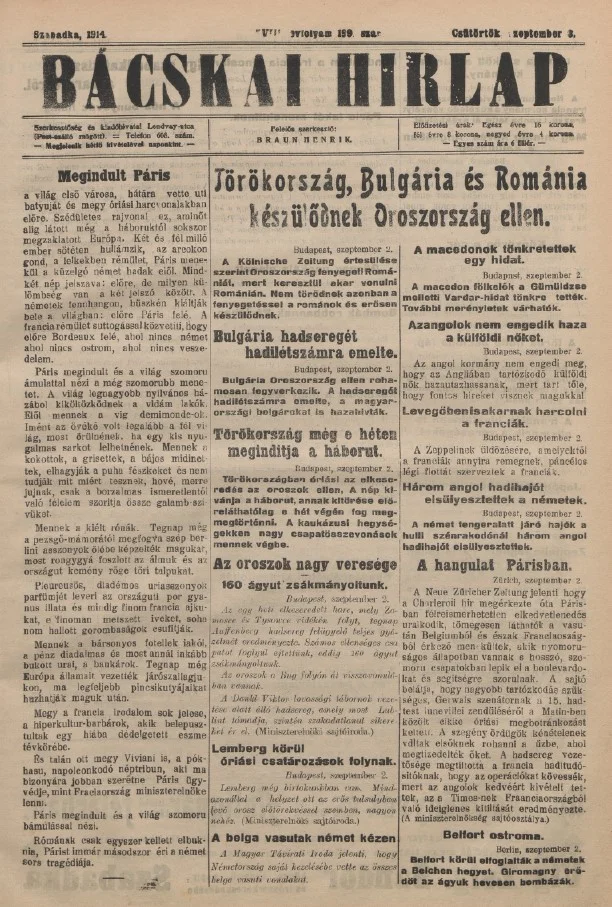 Bácskai Hirlap, 18. évf. 1914. szeptember 3. 199. sz.