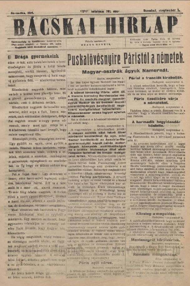 Bácskai Hirlap, 18. évf. 1914. szeptember 5. 201. sz.