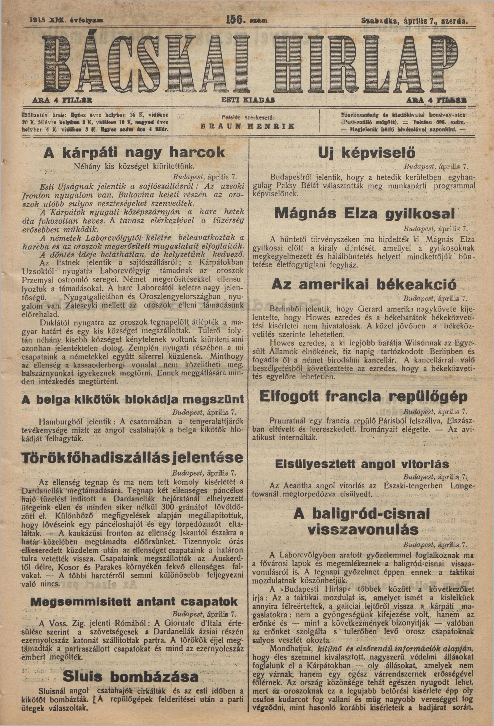 Bácskai Hirlap, 19. évf. 1915. április 7. 156. sz.