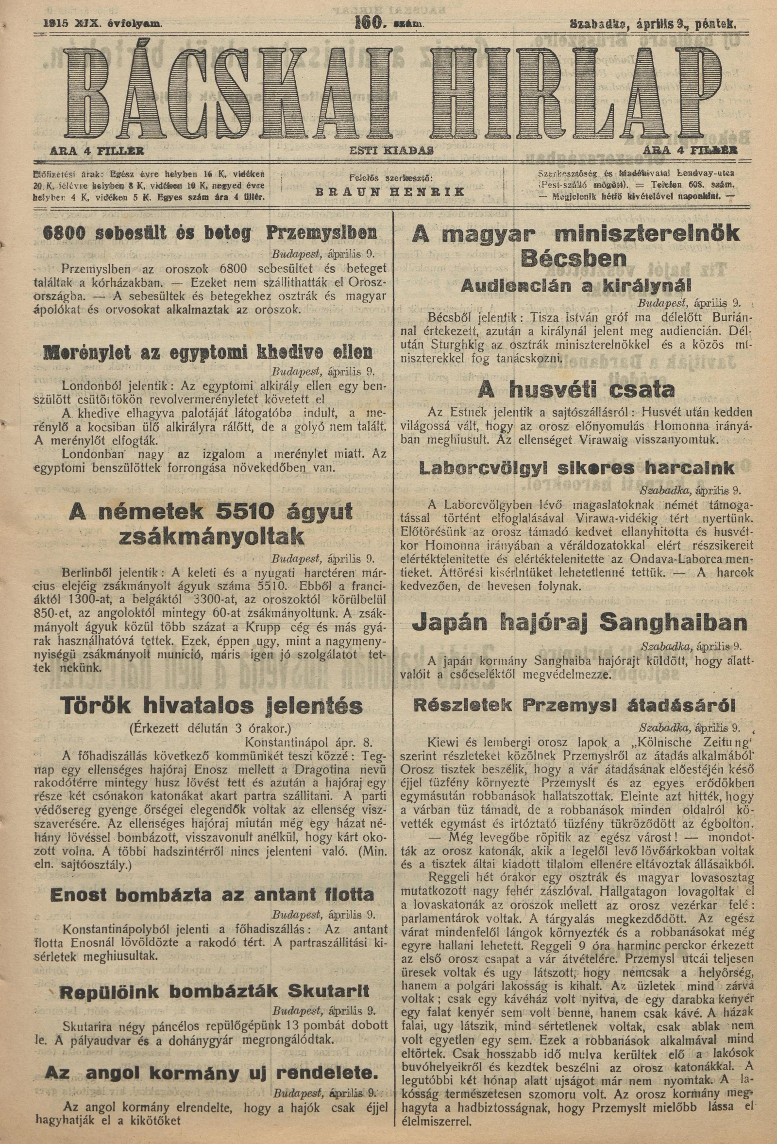 Bácskai Hirlap, 19. évf. 1915. április 9. 160. sz.