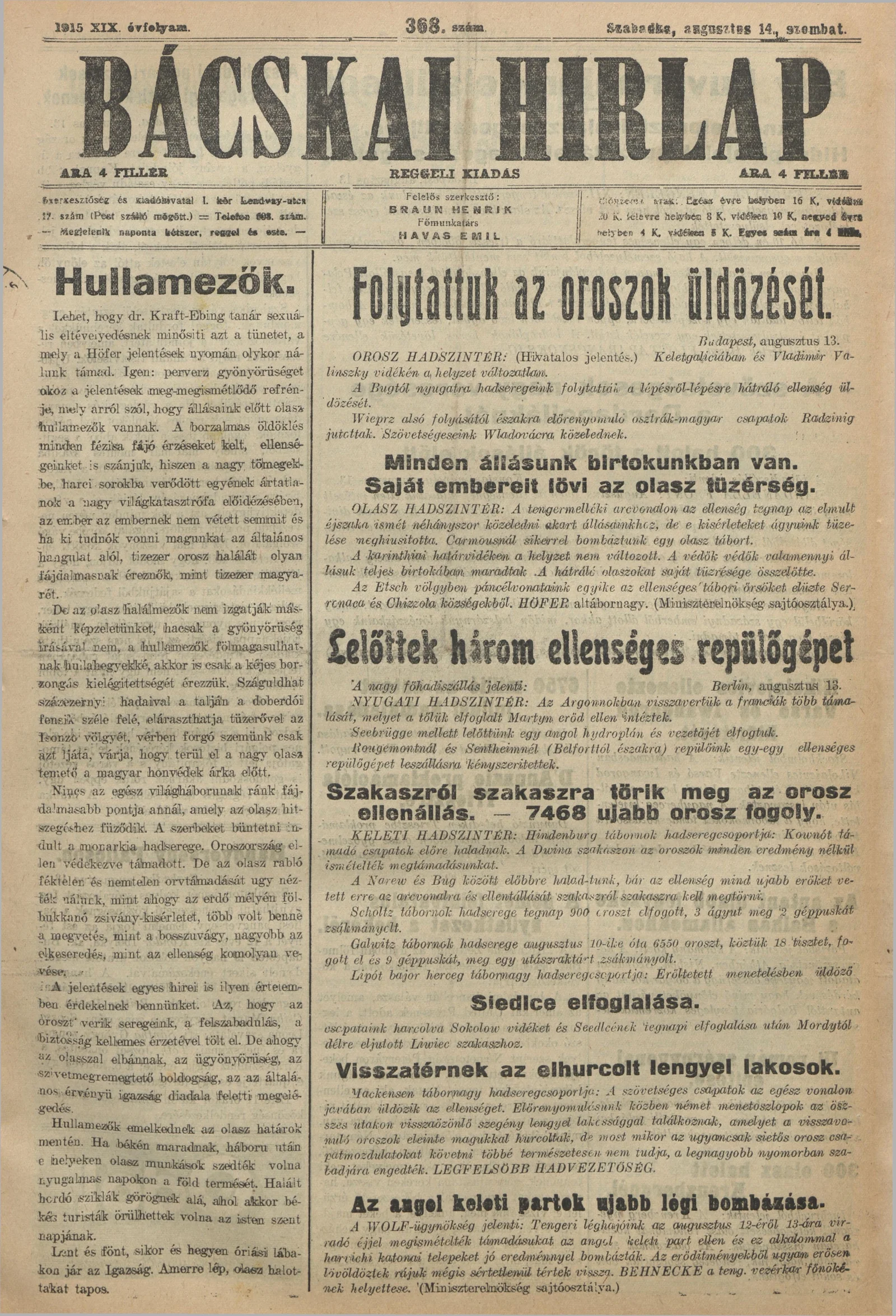 Bácskai Hirlap, 19. évf. 1915. augusztus 14. 368. sz.