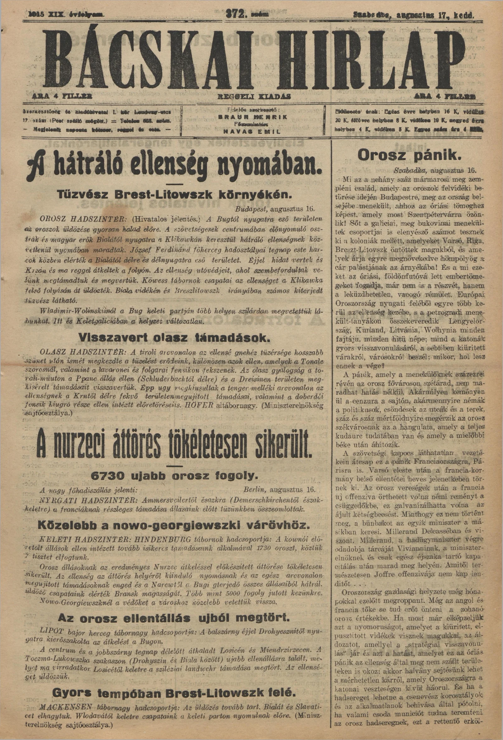 Bácskai Hirlap, 19. évf. 1915. augusztus 17. 372. sz.
