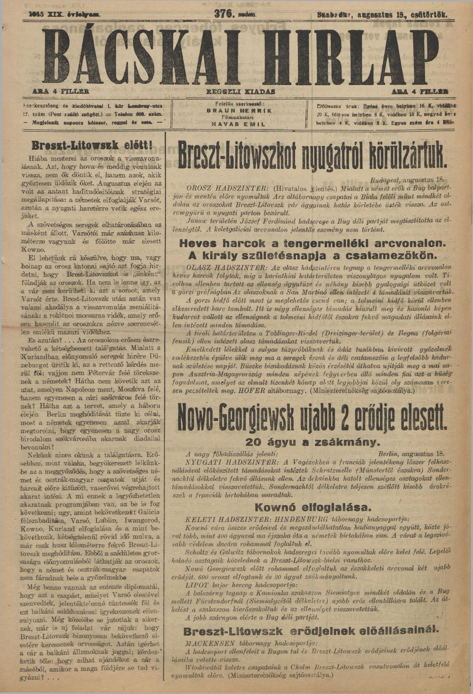 Bácskai Hirlap, 19. évf. 1915. augusztus 19. 376. sz.