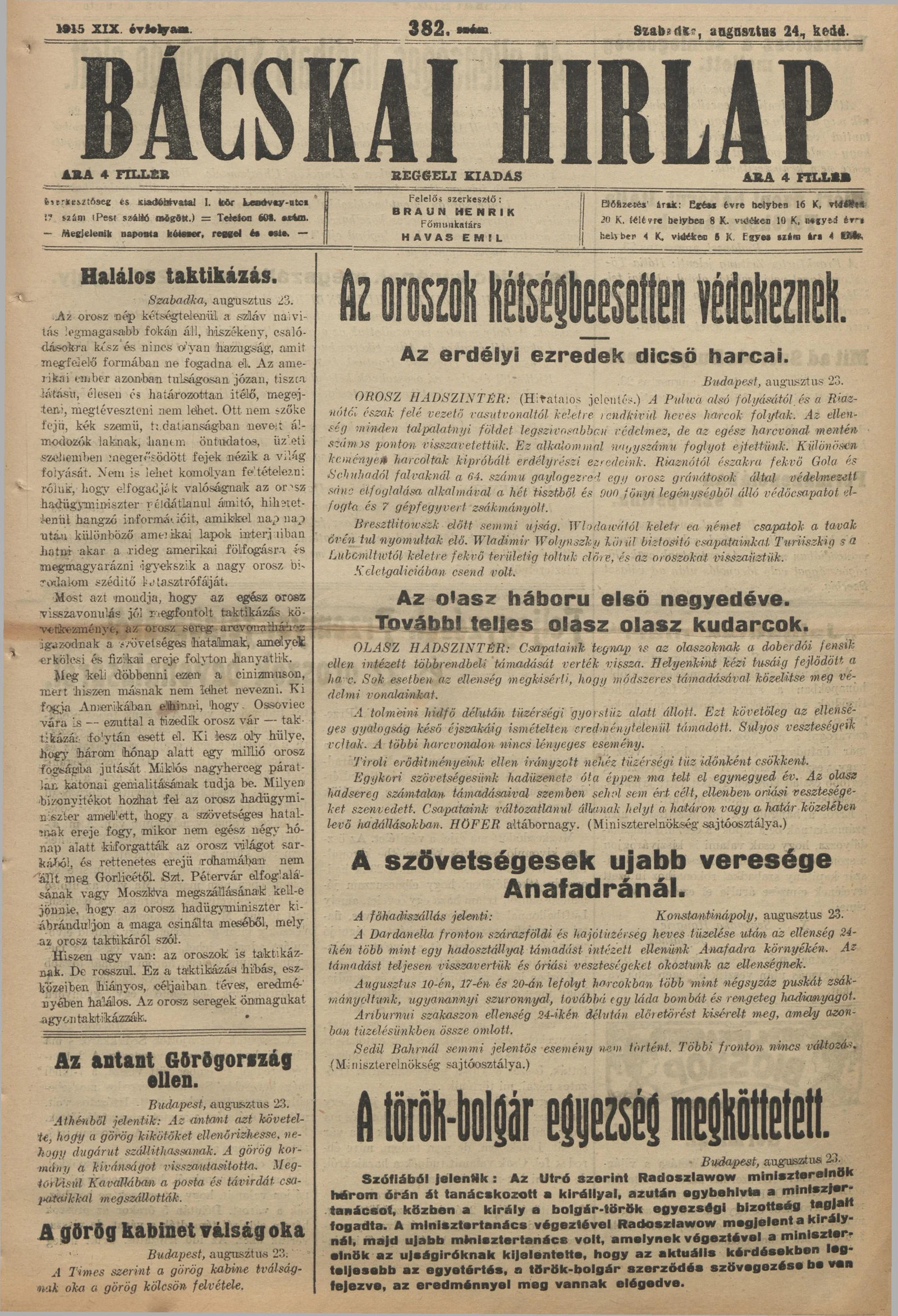 Bácskai Hirlap, 19. évf. 1915. augusztus 24. 382. sz.