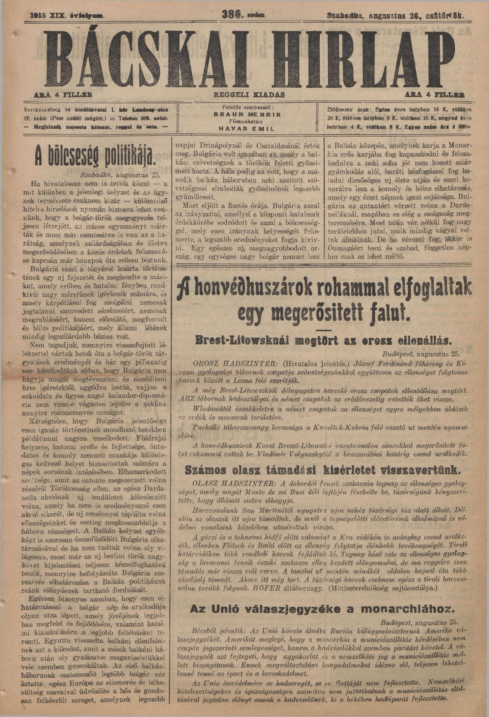 Bácskai Hirlap, 19. évf. 1915. augusztus 26. 386. sz.