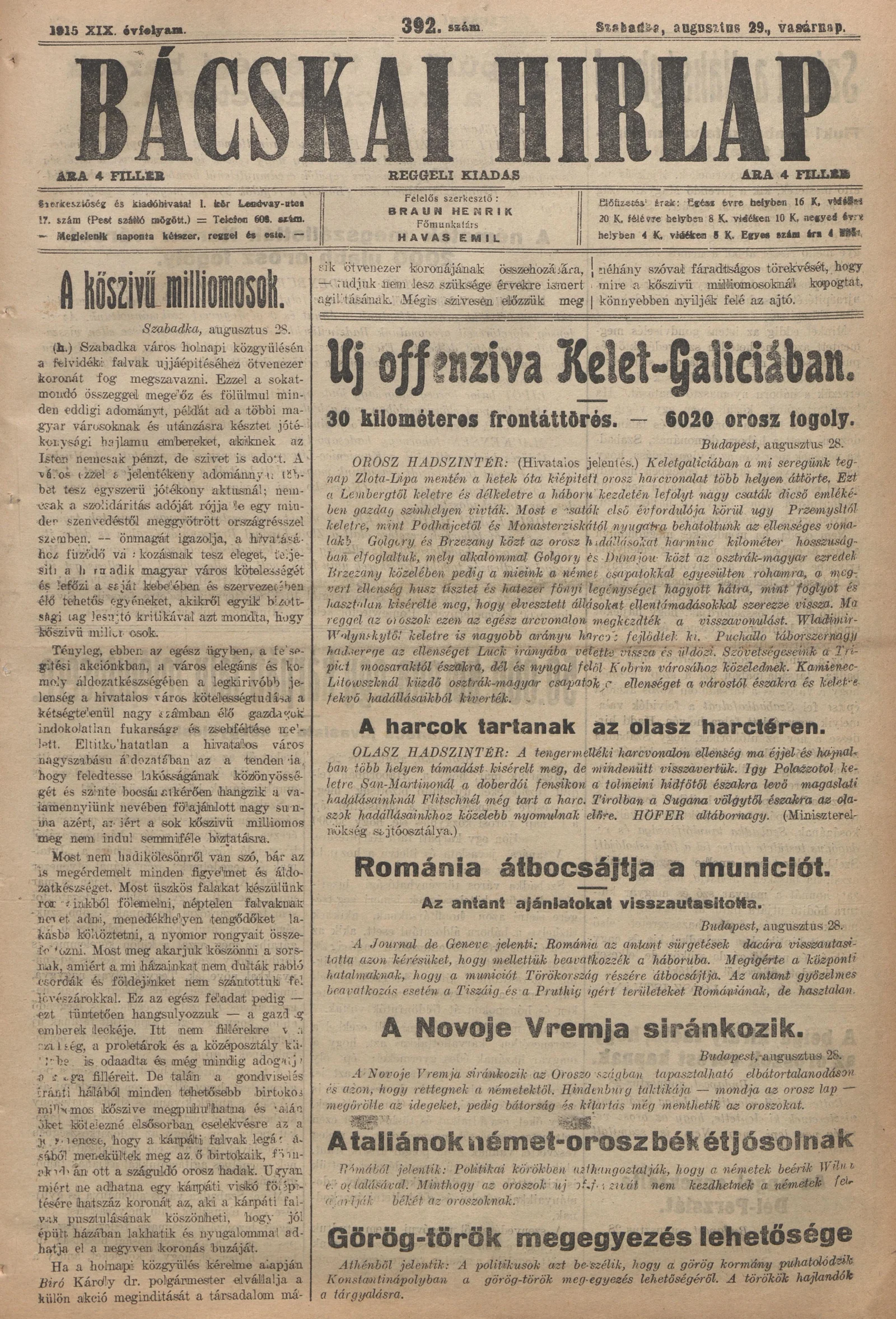 Bácskai Hirlap, 19. évf. 1915. augusztus 29. 392. sz.