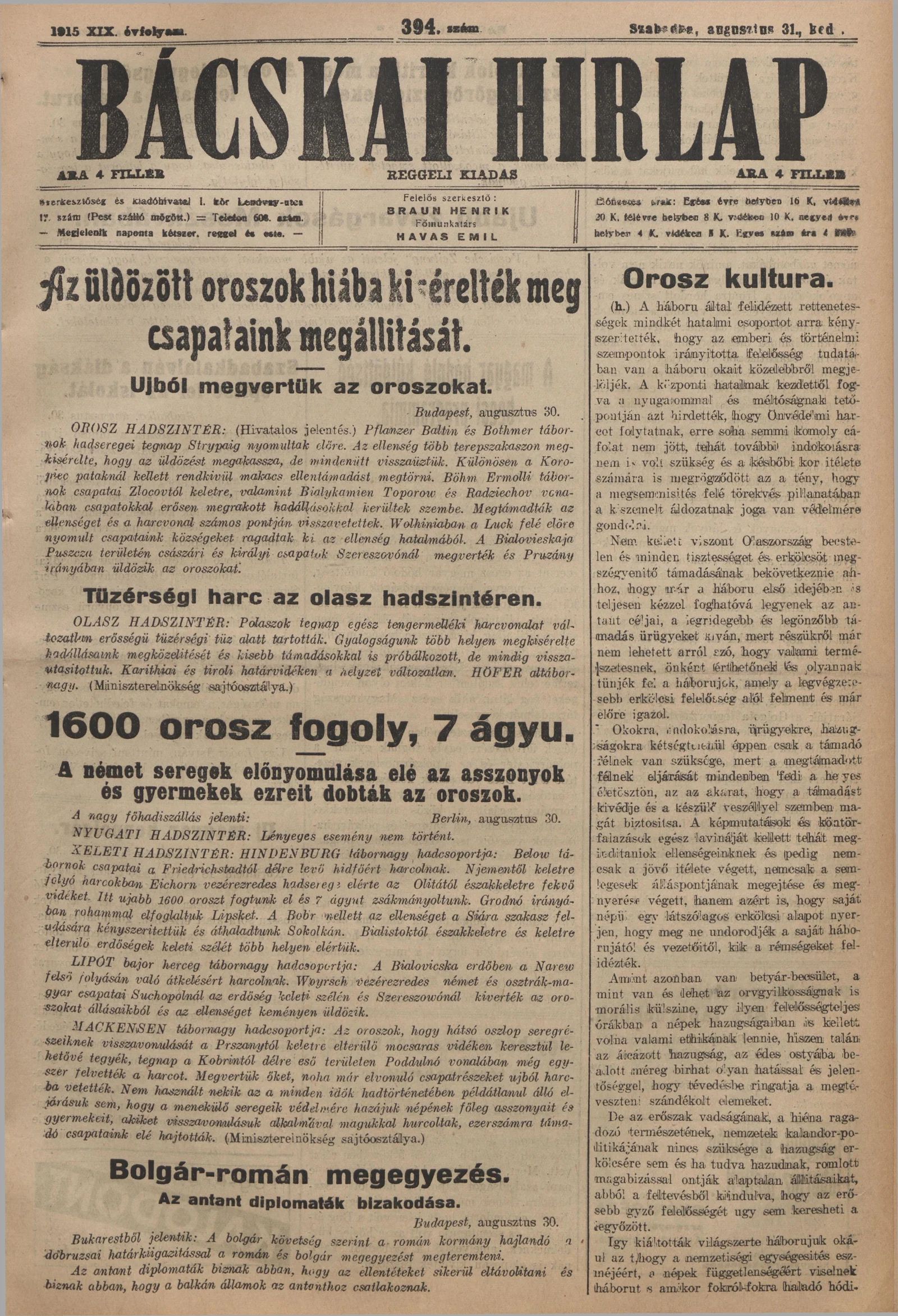 Bácskai Hirlap, 19. évf. 1915. augusztus 31. 394. sz.