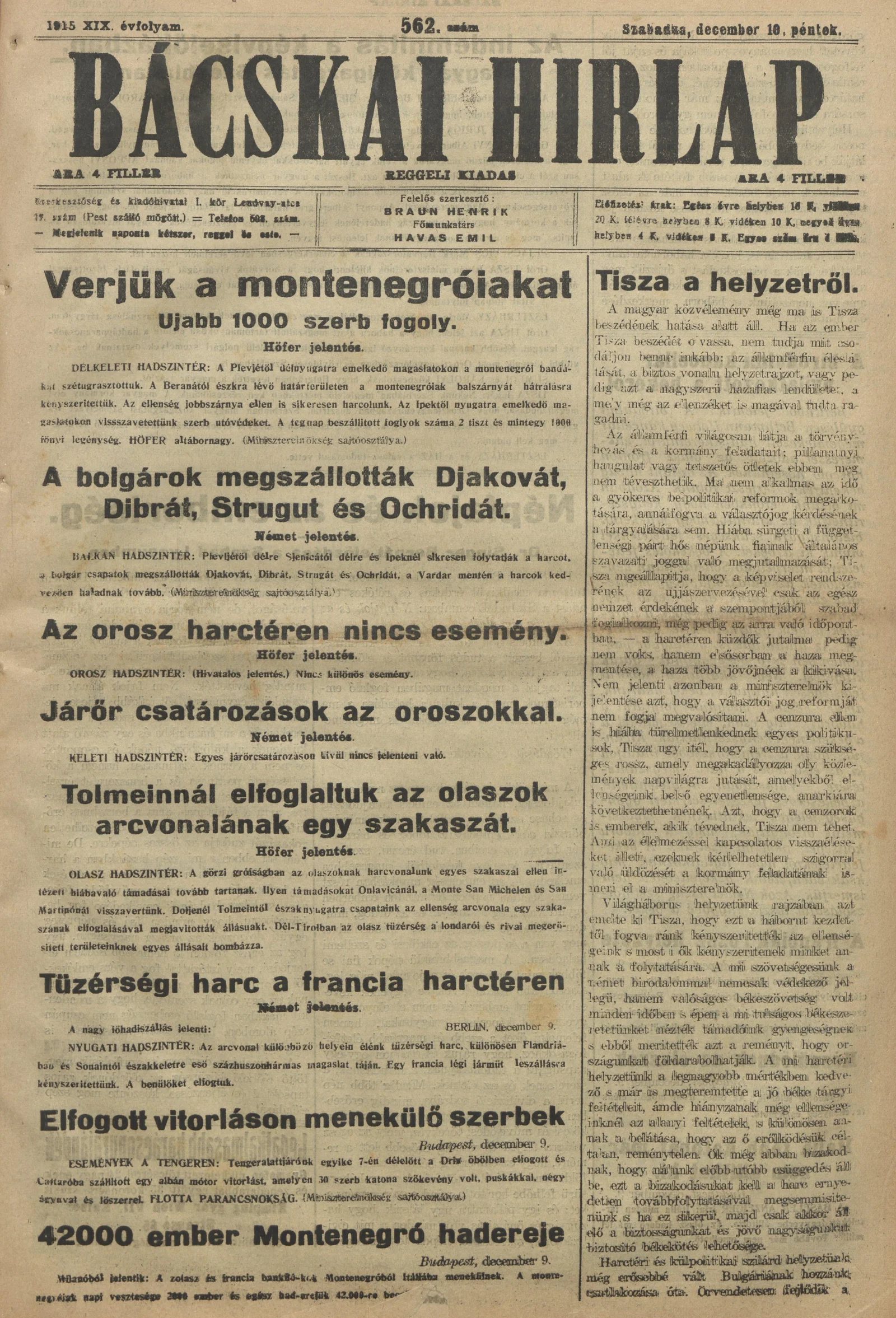 Bácskai Hirlap, 19. évf. 1915. december 10. 562. sz.