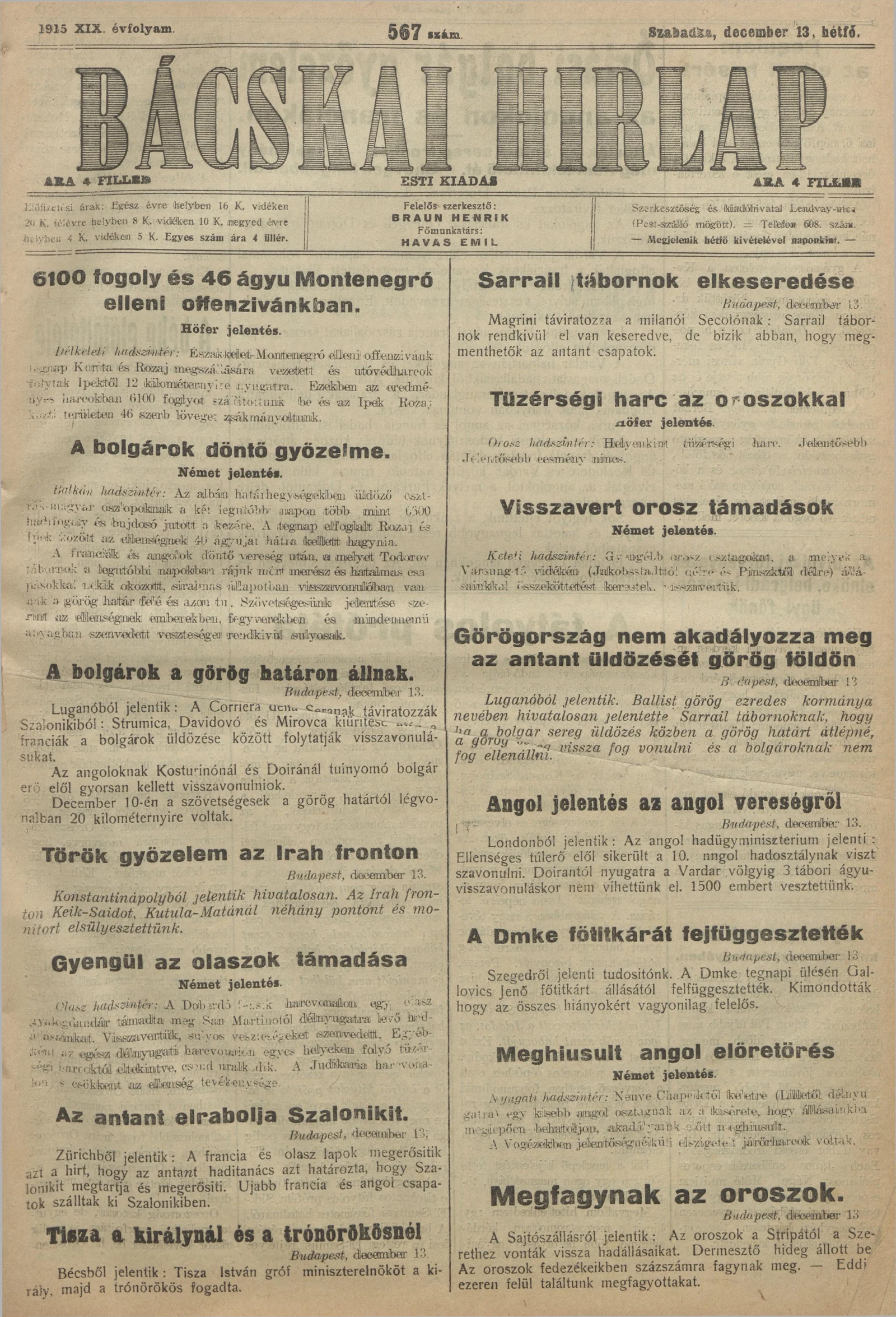 Bácskai Hirlap, 19. évf. 1915. december 13. 567. sz.