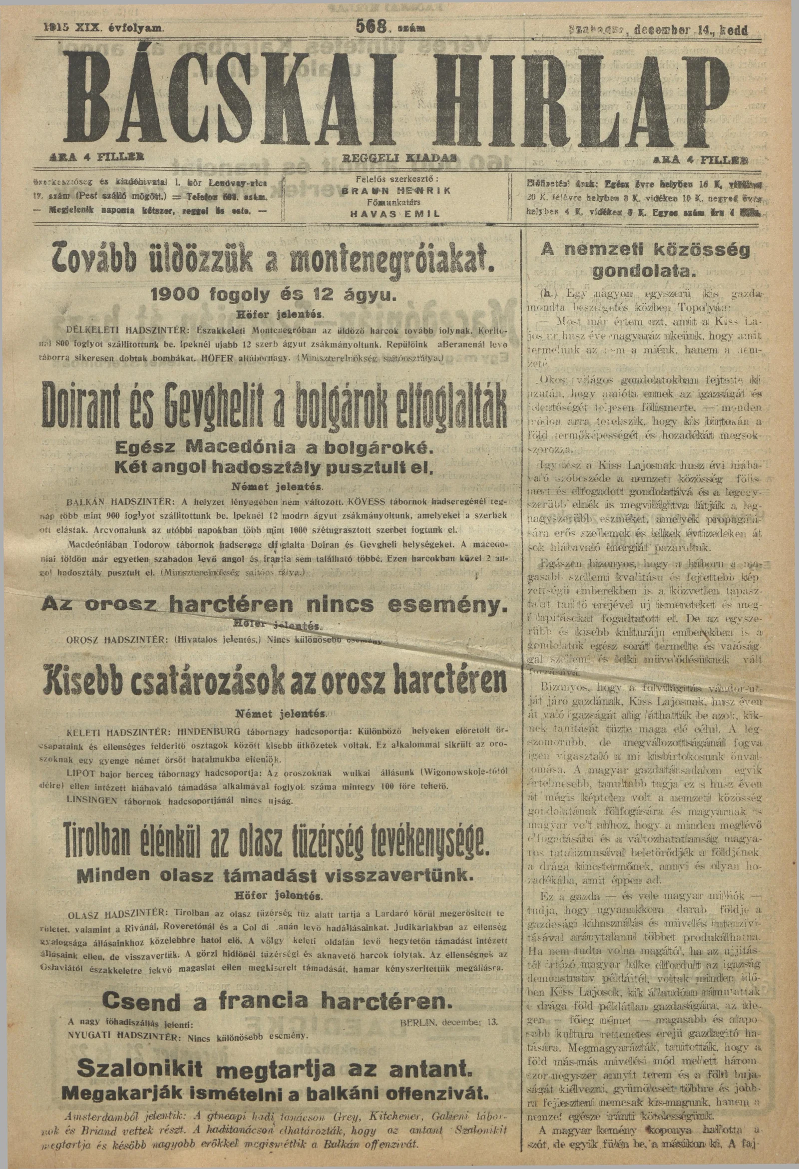 Bácskai Hirlap, 19. évf. 1915. december 14. 568. sz.